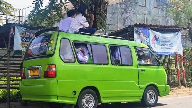 KLARI, RAKA- Aksi nekat Siswa Sekolah Menengah Pertama Negeri (SMPN) 2 Klari duduk naik di atap angkutan kota (angkot) yang…
