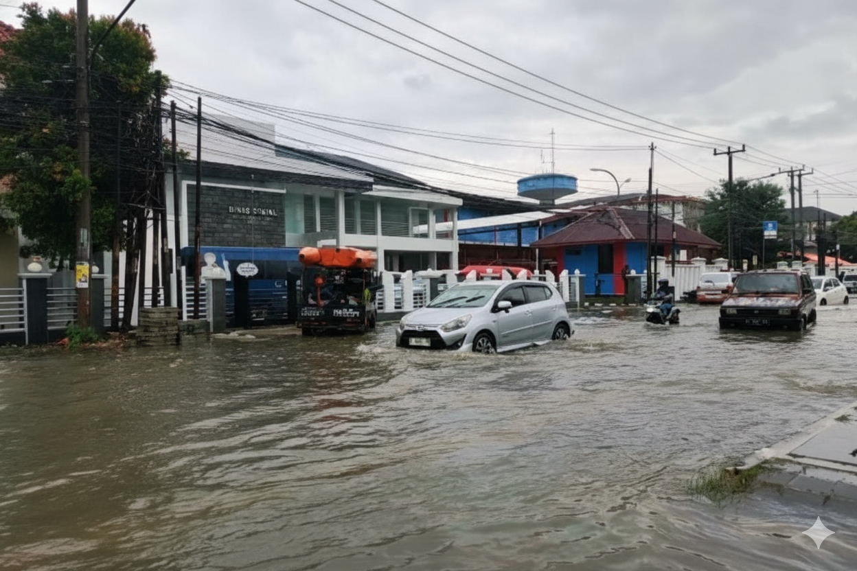 BANJIR: Banjir merendam jalan di perkotaan Karawang. Wakil Ketua DPRD Kabupaten Karawang, Dian Fahrud Jaman menyebut sistem drainase yang buruk menjadi salah satu penyebab banjir.