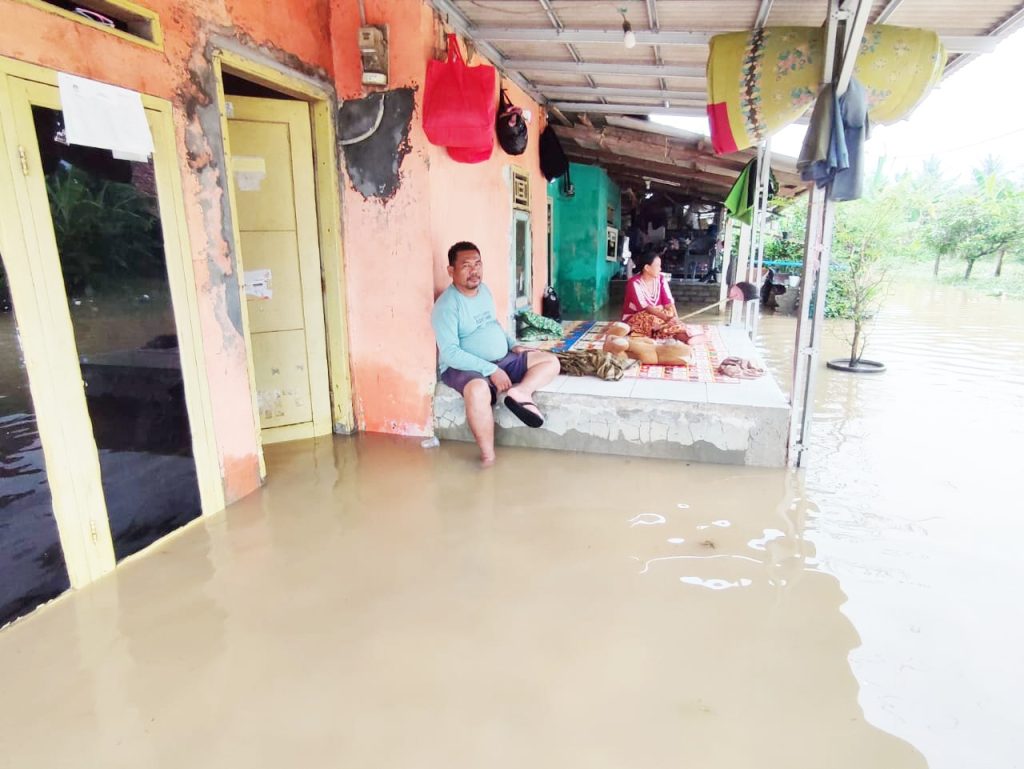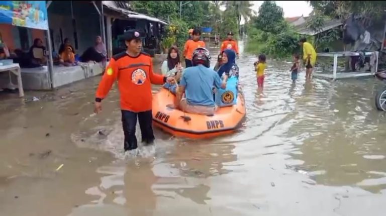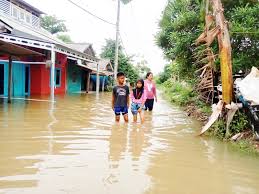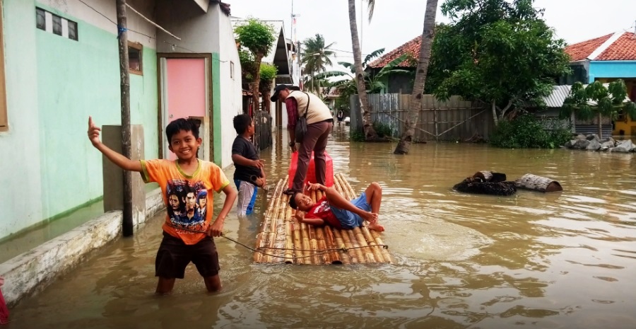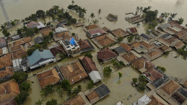 BANJIR KARANGLIGAR : Gambar dari udara yang menunjukkan rumah-rumah di Desa Karangligar, Karawang terendam air