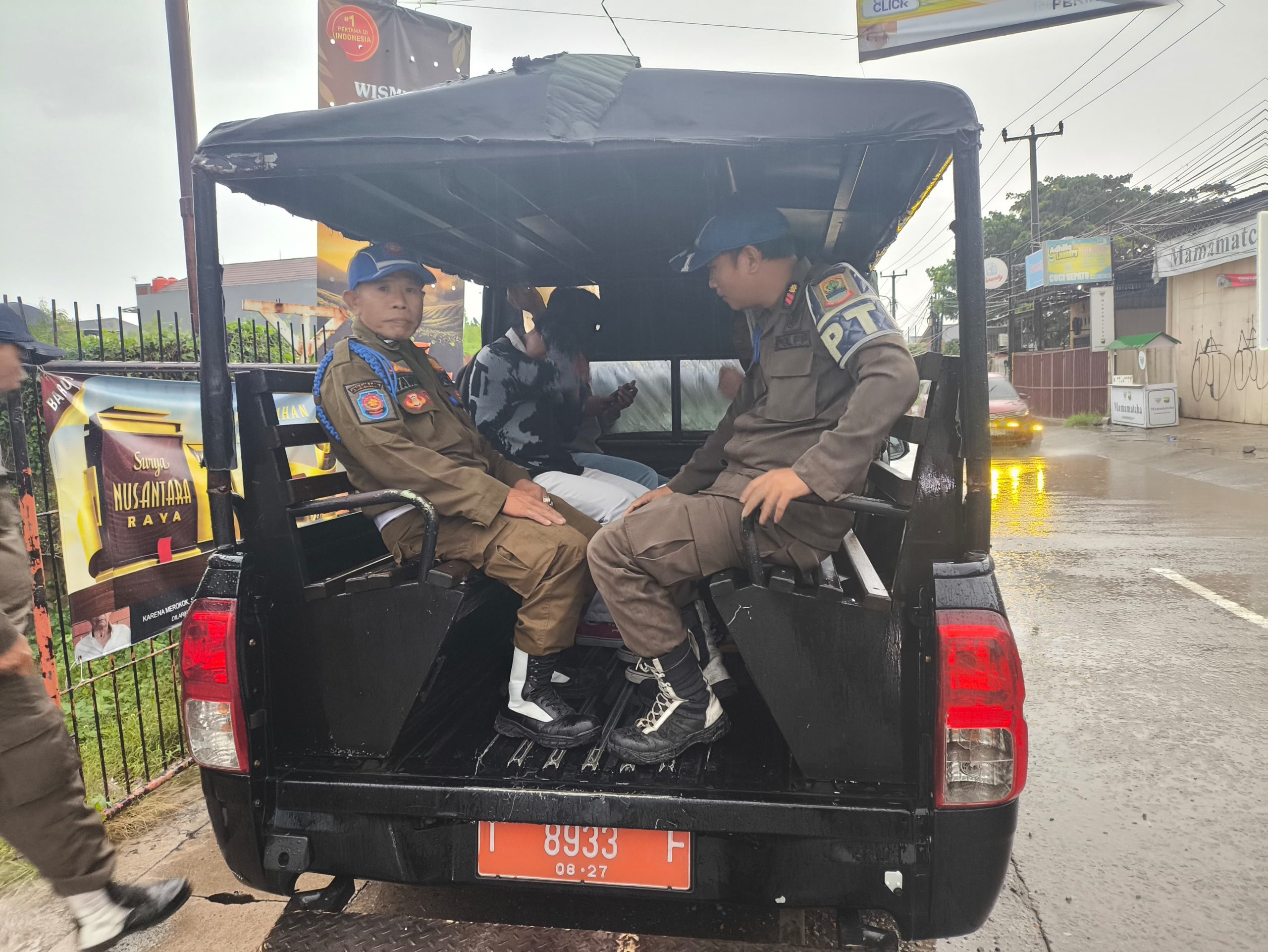 BOLOS SEKOLAH: Satuan Polisi Pamong Praja (Satpol PP) Kabupaten Karawang mengamankan lima orang pelajar yang bermain game onlie saat jam sekolah di warung internet (warnet) Galuhmas, Senin (12/1).