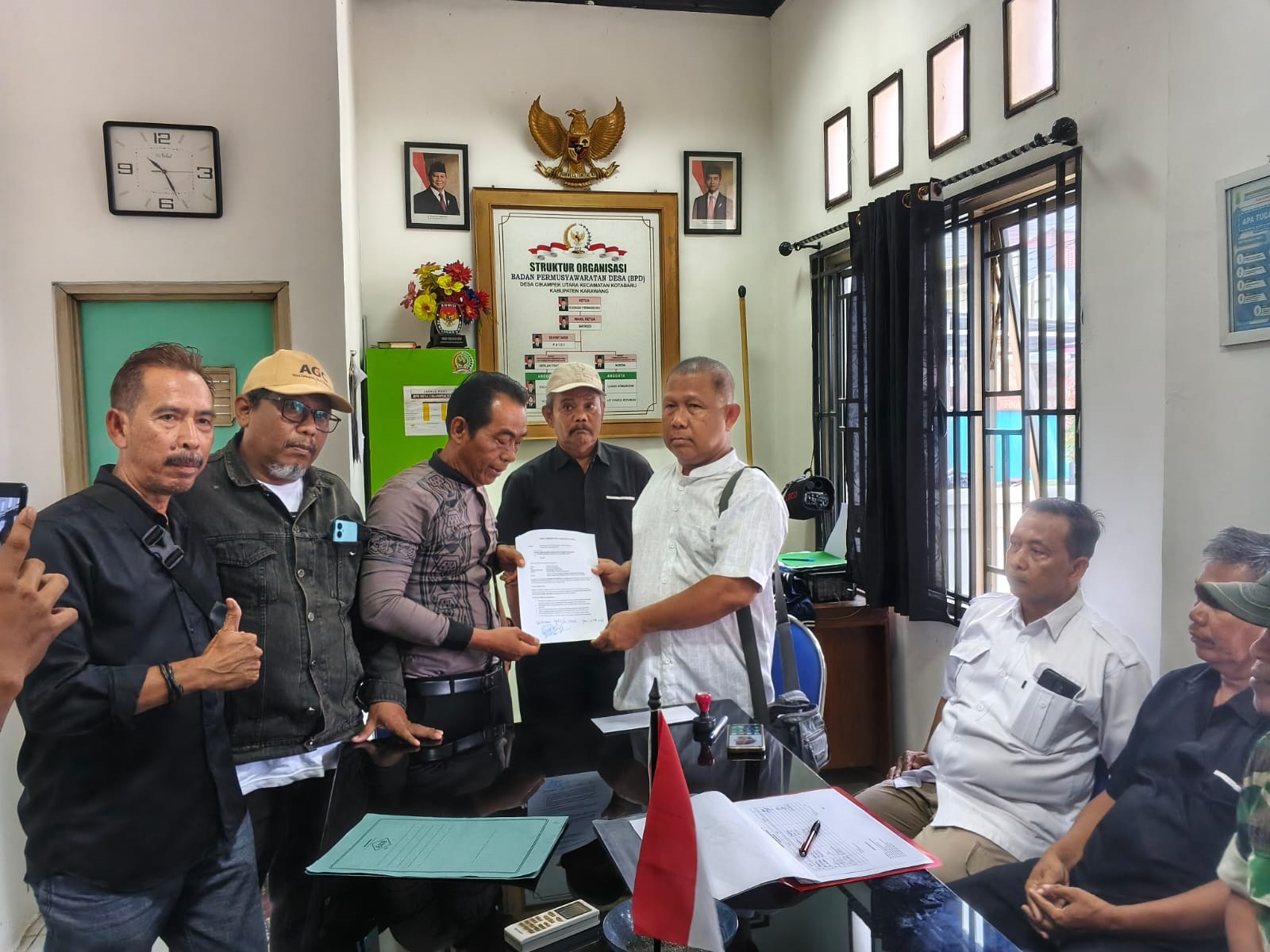 Tim Pemenangan Calon Kepala Desa nomor urut 04, Didin Samsudin, mendatangi Panitia Pemilihan Kepala Desa (Pilkades) dan Badan Permusyawaratan Desa (BPD) Desa Cikampek Utara, Kecamatan Cikampek, Senin (5/1). Kedatangan mereka untuk menyampaikan surat keberatan atau sanggahan atas hasil Pilkades yang digelar pada 28 Desember 2025.