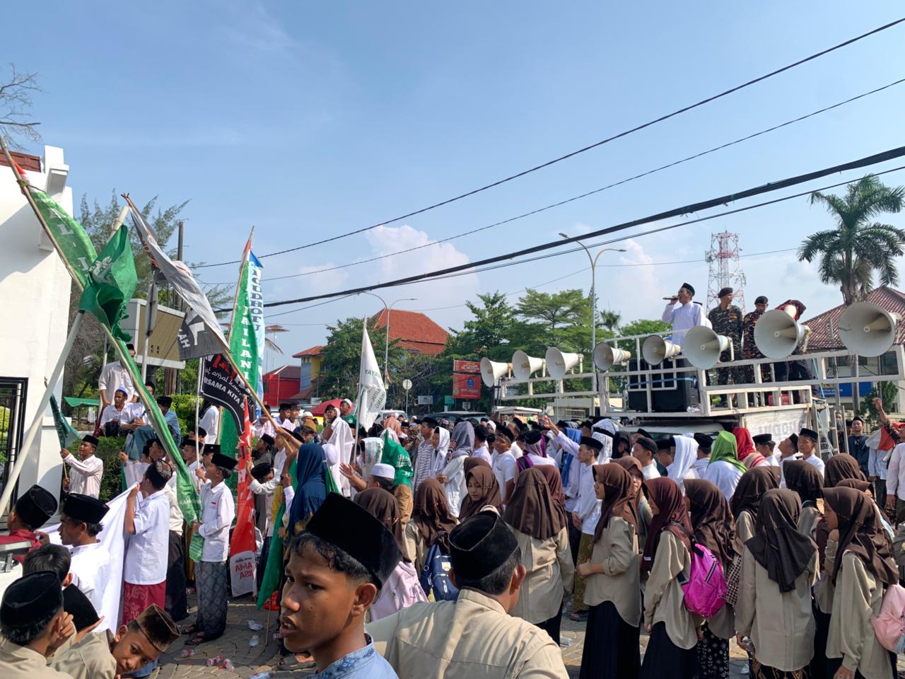 Kegiatan yang diselenggarakan berdekatan dengan peringatan Hari Santri Nasional ini diberi tajuk simbolis “Hari Santri Dinodai.” Mereka memilih waktu ini untuk meningkatkan kesadaran publik. Sebelum memusatkan diri di depan Kantor Pemda, massa sempat berkumpul di Masjid Al-Jihad Karangpawitan. Di sana, mereka melaksanakan salat Jumat berjamaah, sebagai permulaan rangkaian kegiatan. Para peserta aksi hadir dengan busana khas yang menjadi identitas mereka. Mereka kompak mengenakan sarung, peci, dan gamis, menunjukkan kesatuan dalam aspirasi.