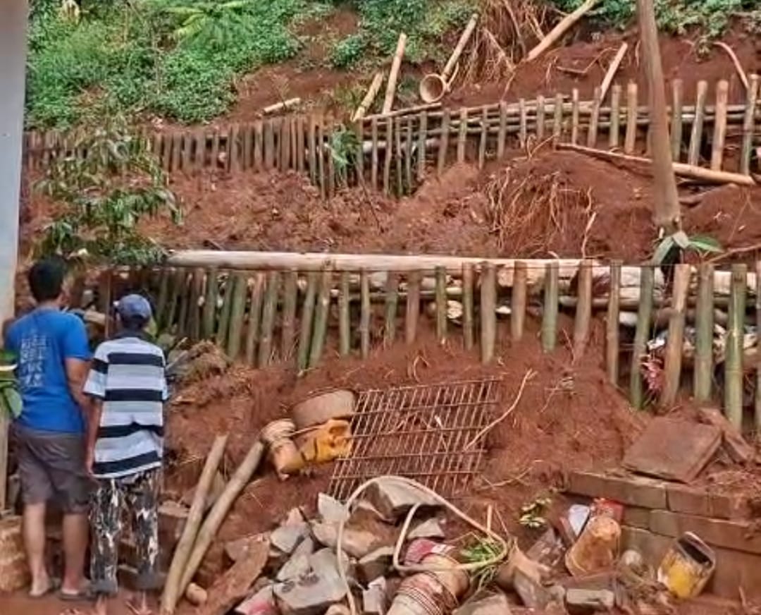 GOTONG ROYONG: Developer perumahan bersama warga melakukan gorong royong mengantispasi longsor dengan memasang penahan tanah menggunakan rucuk bambu.