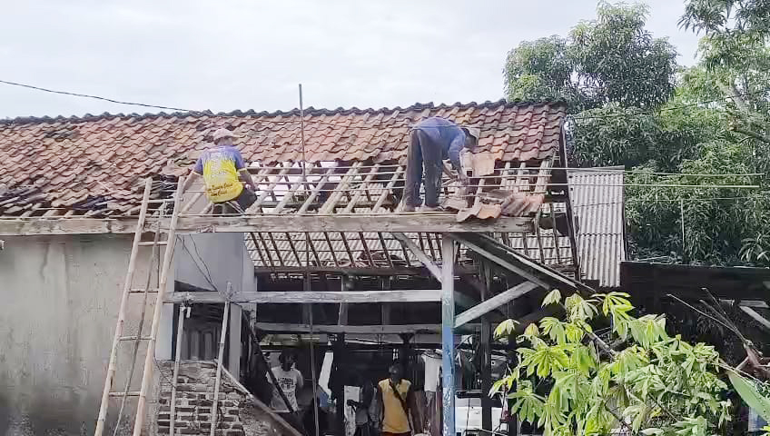 Usai angin mereda, warga langsung bergerak melakukan gotong royong memperbaiki rumah masing-masing, terutama bagian atap. Langkah itu dilakukan karena hujan gerimis masih turun dan air mulai masuk ke dalam rumah.