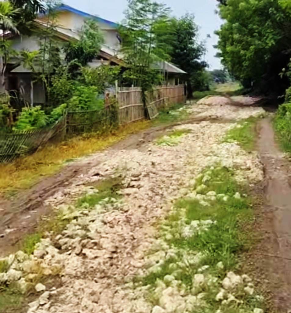 JALAN RUSAK: Kondisi jalan tanggul BBWS Cilamaya Wetan, kabarnya sudah beberapa tahun ini tidak tersentuh perbaikan. Beberapa warga setempat yang tinggal disepanjang jalan tersebut berharap agar ada perbaikan secepatnya.