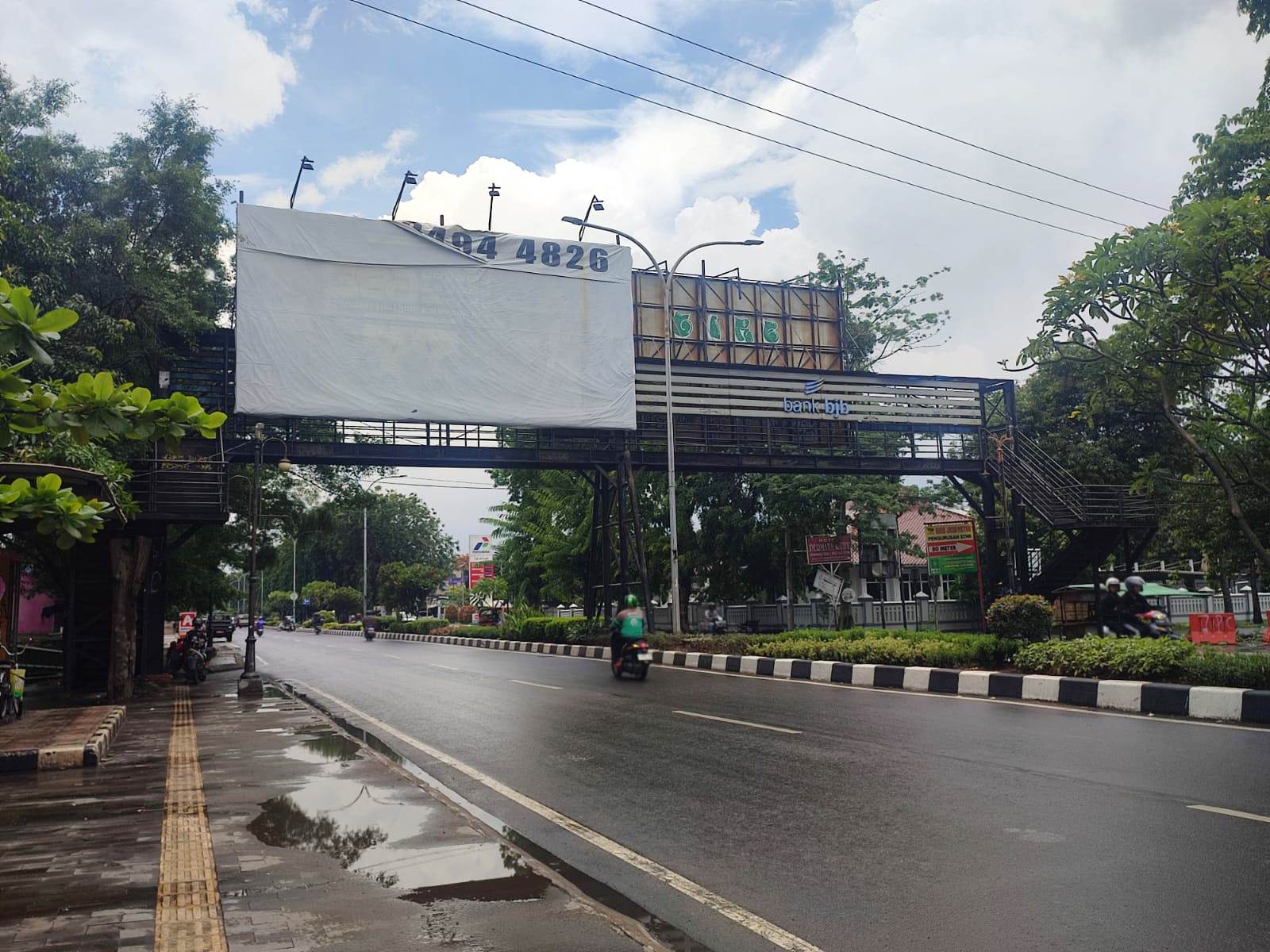 JARANG DIGUNAKAN: Jembatan penyeberangan di Jalan Ahmad Yani Karawang jarang digunakan pejalan kaki. Mereka lebih memilih jalan bawah.