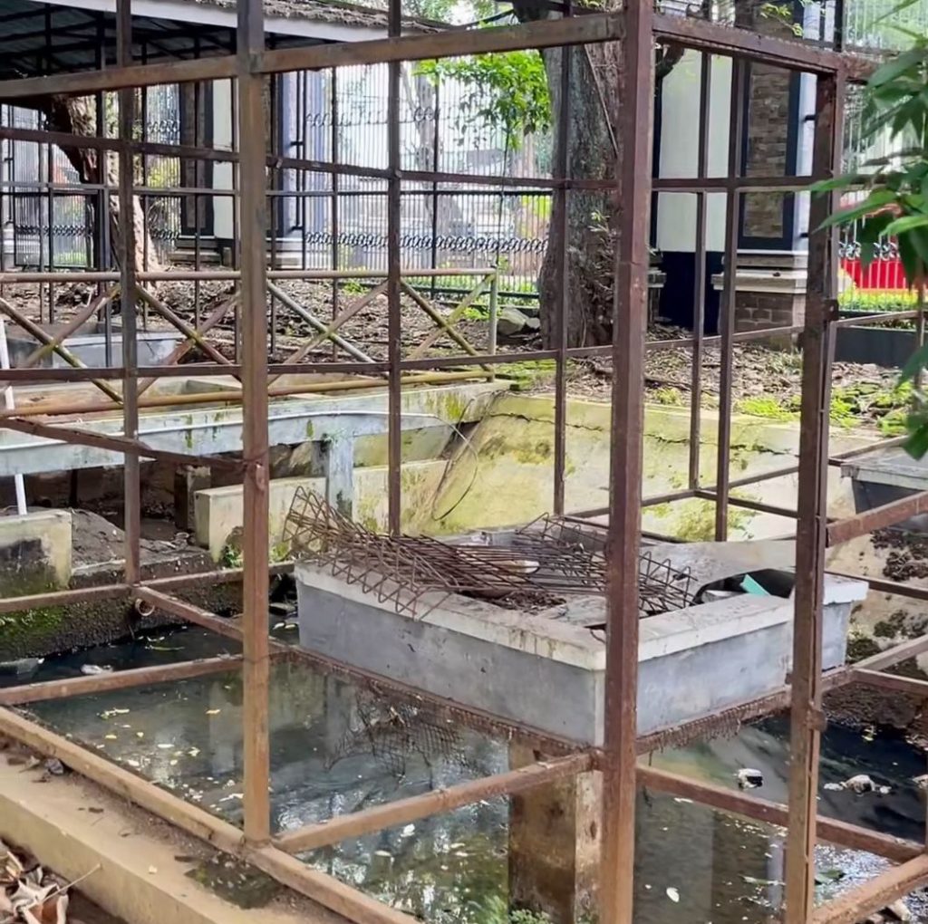 ‎KANDANG SATWA: Sejumlah kandang satwa di Kawasan Air Mancur Sri Baduga terbengkalai dan semrawut. Kondisi ini membuat kecewa para pengunjung.