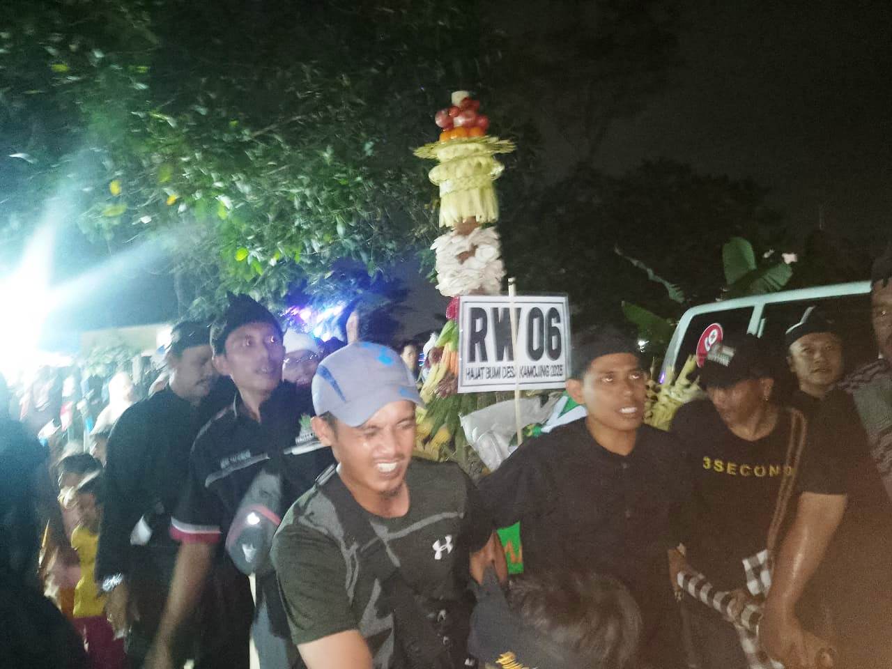CIKAMPEK, RAKA- Ribuan warga Desa Kamojing padati jalan, karnaval dongdang meriahkan hajat bumi, Sabtu malam (30/8). Arak-arakan dongdang yang tahun ini digelar secara berbeda dari biasanya. Tradisi yang biasa digelar pada sore hari itu, untuk pertama kalinya dilaksanakan pada malam hari.