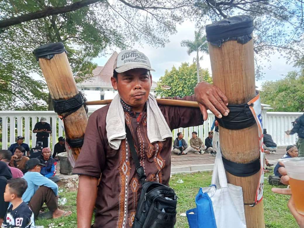 Dialah Nanto (52), penjual nira aren yang setiap hari memikul dagangannya berkeliling di wilayah Karawang.