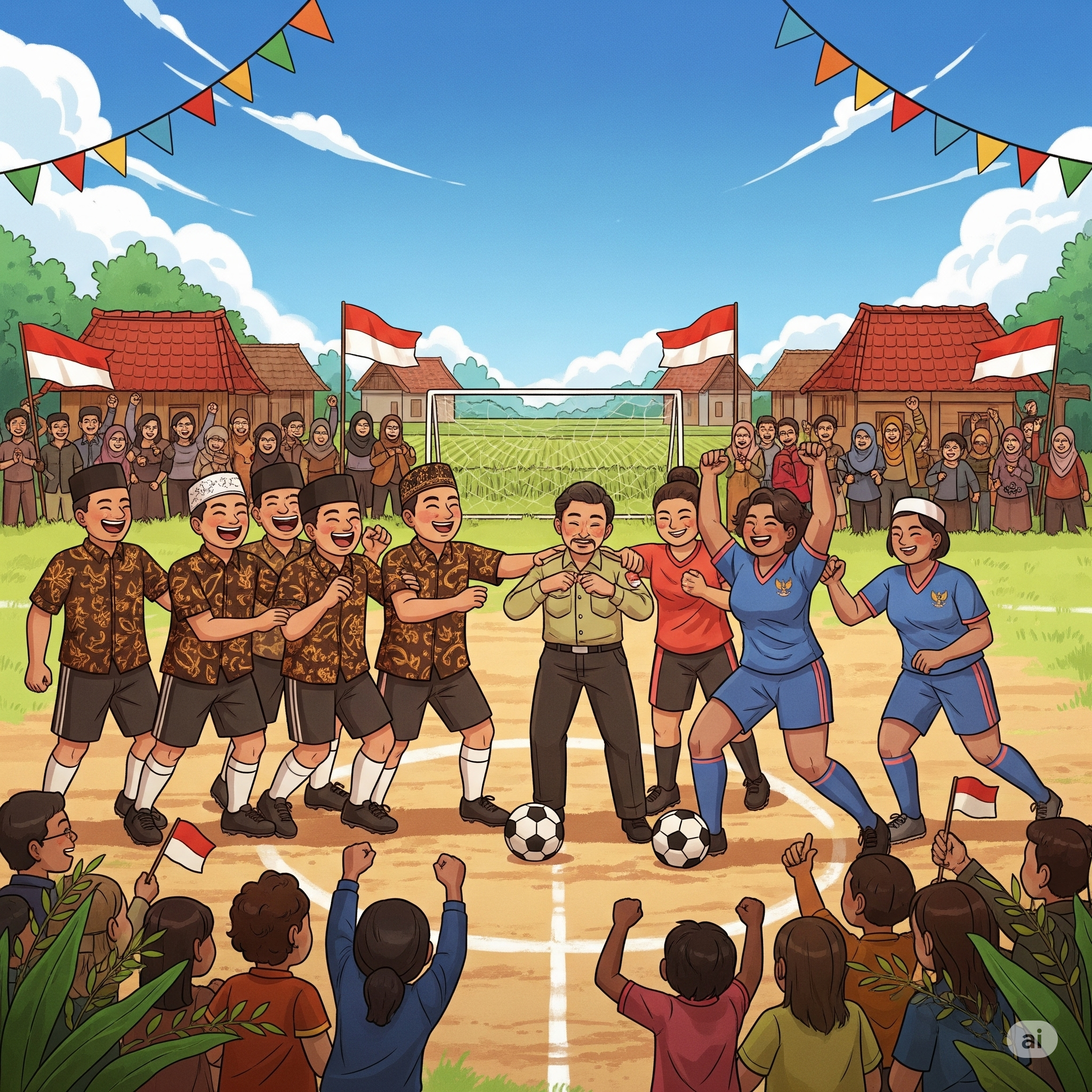 Pada Jumat, 29 Agustus, warga akan disuguhi pertandingan sepak bola yang tak biasa. Laga persahabatan itu mempertemukan tim perangkat desa melawan tim waria Karawang. Pertandingan unik ini diyakini akan menghadirkan gelak tawa sekaligus menjadi tontonan yang dinanti masyarakat.