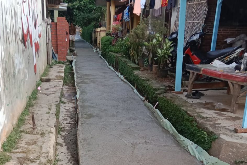 PEMBANGUNAN: Pembangunan infrastruktur jalan lingkungan di wilaya Desa Pangulah Selatan, Kecamatan Kotabaru, Karawang.