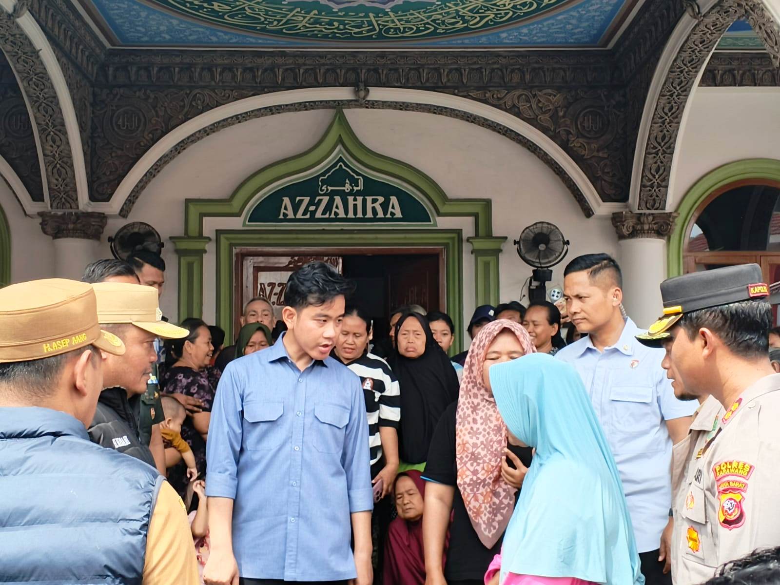KARAWANG, RAKA- Wakil Presiden Republik Indonesia Gibran Rakabuming Raka datangi korban banjir di Kelurahan Tanjungpura, Kecamatan Karawang Barat, pada Senin (19/1).