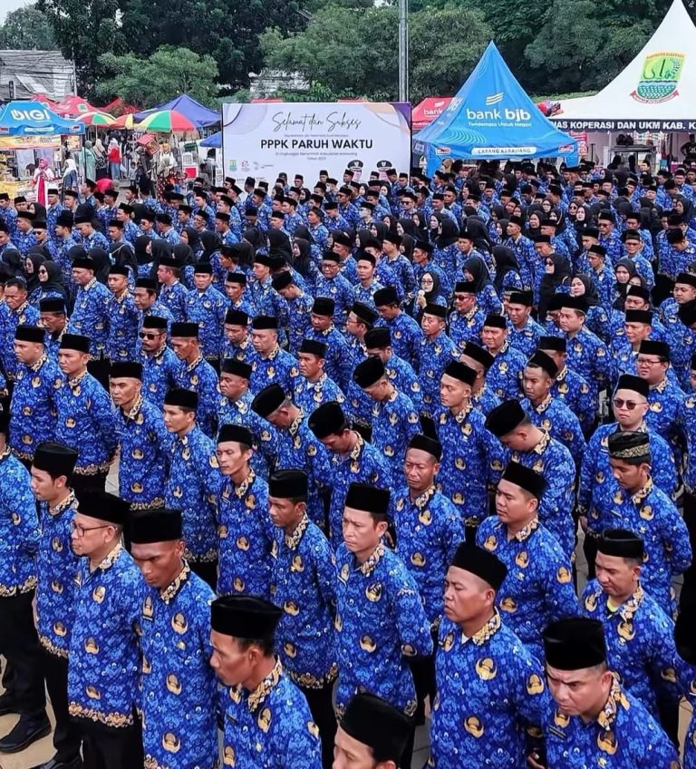 KARAWANG, RAKA – Pengangkatan ribuan PPPK paruh waktu di Karawang, mayoritas yang sebelumnya merupakan honorer tenaga teknis dan guru.