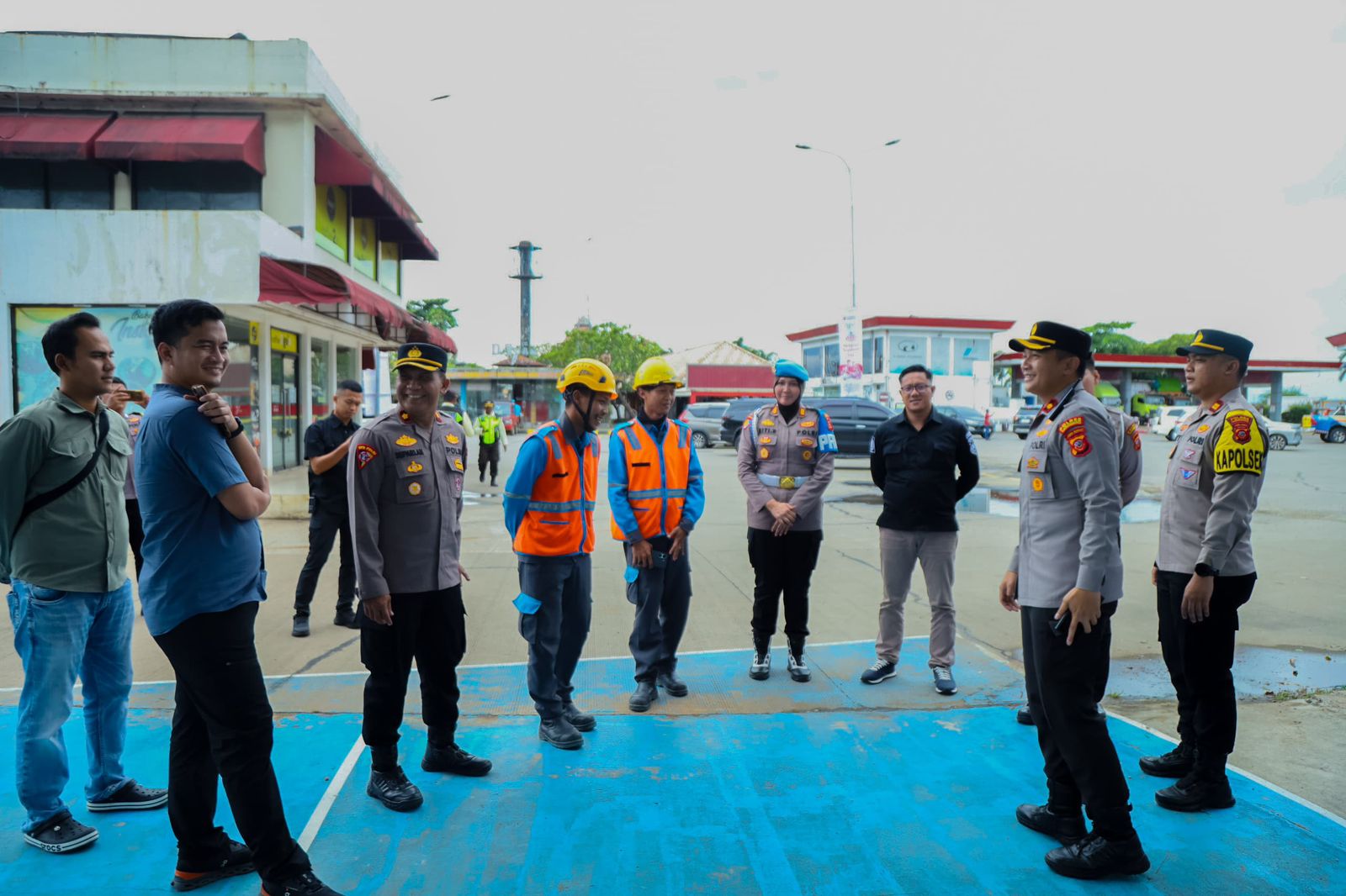 PERSIAPAN NATARU: Anggota Polsek Karawang sisir sejumlah titik yang berpotensi timbulkan kemacetan.