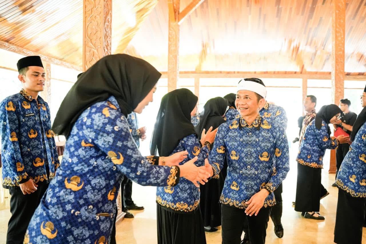 SALAMAN: Pegawai pemerindah daerah menyalami Bupati Purwakarta. Pemerintah Kabupaten Purwakarta resmi menerapkan pola kerja Flexible Working Arrangement (FWA) bagi Aparatur Sipil Negara (ASN).