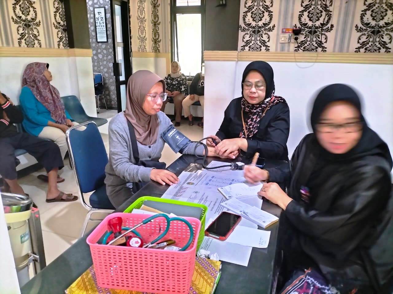 Pemeriksaan yang dilakukan meliputi pengecekan tekanan darah, kadar gula darah, kolesterol, asam urat, berat badan, tinggi badan, serta konsultasi kesehatan umum.