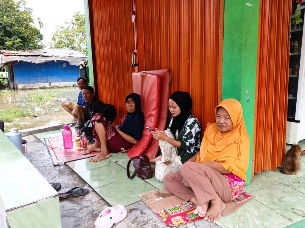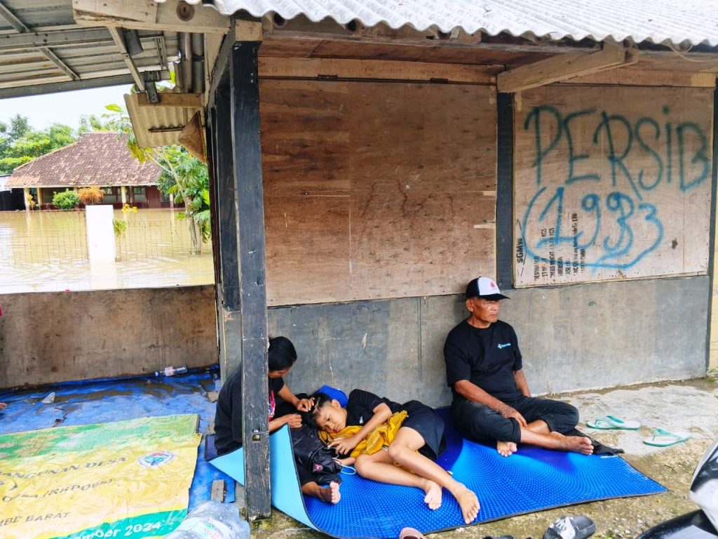 MAKIN LUAS: Banjir di Karawang, terutama di Desa Karangligar makin luas. Tempat pengungsian yang menjadi tempat aman bagi para pengungsi ikut terendam, sehingga warga harus mencari tempat lain.