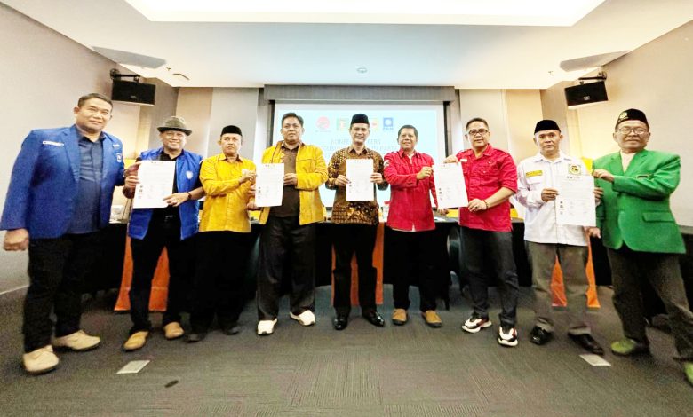 PURWAKARTA, RAKA – Koalisi empat partai yang terdiri dari PDI Perjuangan, Hanura, Partai Persatuan Pembangunan (PPP), dan Partai Amanat Nasional (PAN) gelar deklarasi usung Zainal Arifin sebagai bakal calon Bupati Purwakarta periode 2024-2029. Deklarasi yang digelar di Hotel Harper, Bungursari pada Selasa (11/6) sore itu dihadiri oleh sejumlah tokoh penting dari masing-masing partai tersebut. Acara deklarasi tersebut ditutup dengan penandatanganan nota kesepakatan oleh partai koalisi yang hadir.