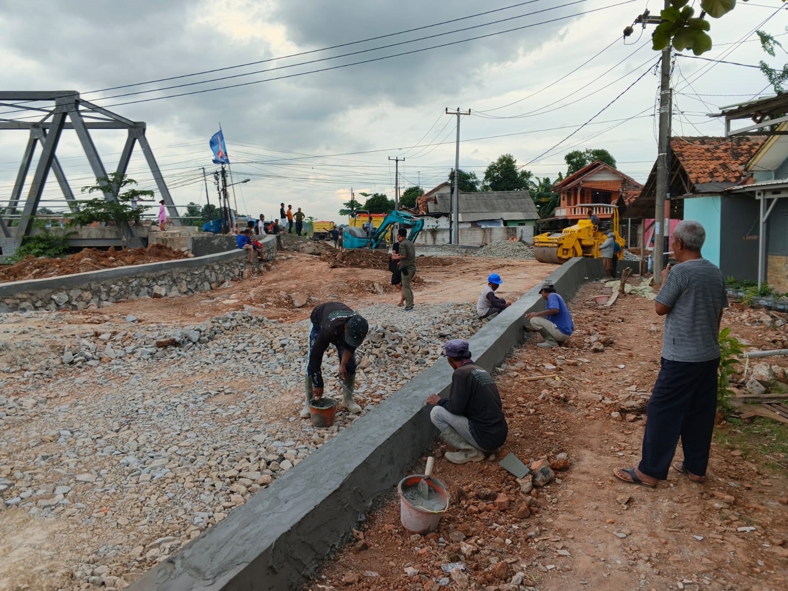 TAGIH KOMPENSASI: Warga terdampak penggusuran pembangunan Jembatan Ciselang menagih janji Pemda Karawang terkait kompensasi yang mesti dibayar. Sampai saat ini, warga belum menerima kompensasi, padahal rumah mereka sudah dibongkar.