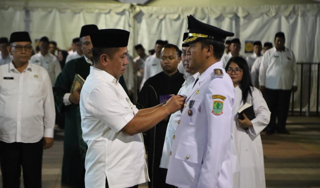 Bupati Karawang H. Aep Syaepuloh memimpin langsung prosesi pengambilan sumpah/janji serta pelantikan Pejabat Pimpinan Tinggi Pratama, Pejabat Administrator, Pejabat Pengawas, dan Pejabat Fungsional Tertentu yang digelar di Lapang Karangpawitan, Rabu malam (31/12).