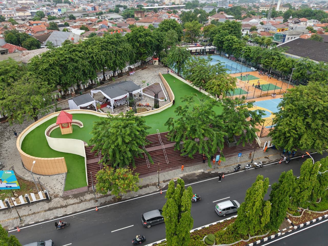 WAJAH BARU: Setelah diresmikan, Senin (29/12), area GOR Panatayudha Karawang sudah dibuka untuk publik. Tak hanya berubah penampilan, sejumlah fasilitas pun semakin lengkap dengan wajah baru GOR Panatayudha ini.